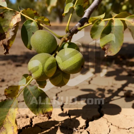 - تنش گرمایی: گردو به دمای بالا حساس است و زود رنج میبرد. اگر دمای هوا در طول دوره پر شدن مغز (اواسط تابستان) به طور مداوم از ۳۸ درجه سانتیگراد فراتر رود، فرآیندهای بیوشیمیایی درون میوه مختل شده و مغز دچار سوختگی و سیاهشدگی میشود. این گرما، دشمن اصلی کیفیت گردوی شماست.