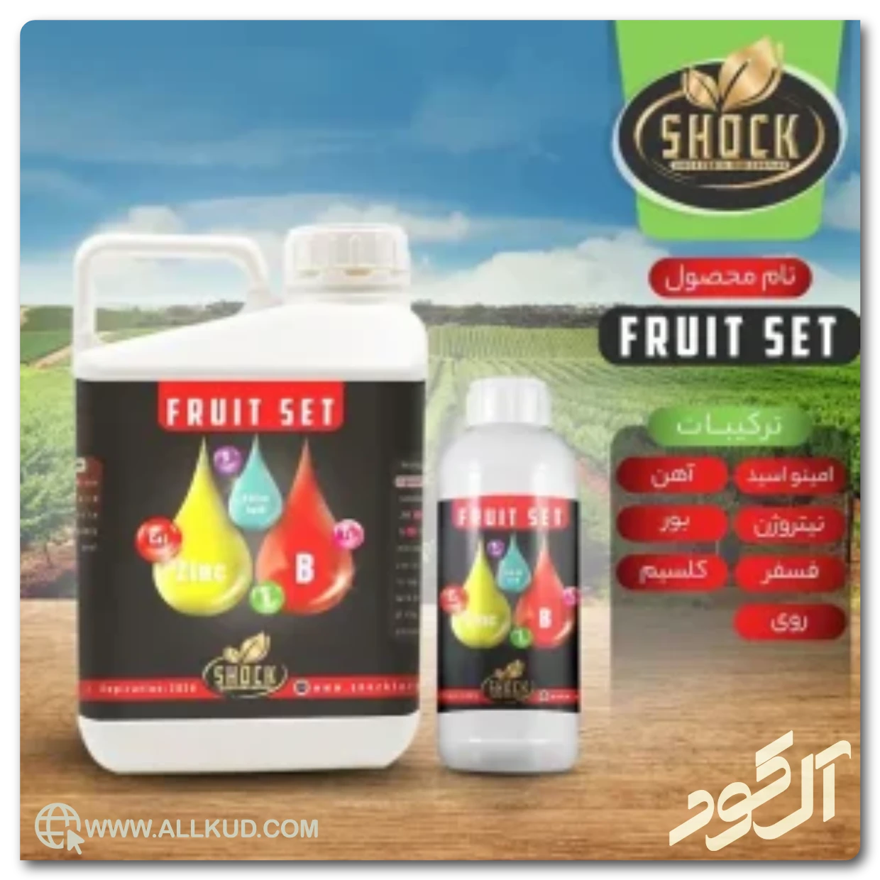 همانطور که در مطالب بالا اطلاعات مفید و کاملی پیرامون کود فروت ست شوک خدمت شما عزیزان اشاره شد، این محصول بی نظیر که به صورت مایع توسط سایت آل کود عرضه می گردد، نقش مهمی در تغذیه جوانه درختان و تولید محصولات عالی دارد. سایت آل کود بزرگترین وارد کننده و عرضه کننده کودهای اصل، مفتخر به ارائه این محصول بی نظیر می باشد. لازم به ذکر است کود فروت ست مایع شوک آمریکایی در حجم های ۱ لیتری، پنج لیتری و بیست لیتری در اختیار مصرف کنندگان قرار می گیرد. برای سفارش این محصول، از بالای همین صفحه با کارشناسان آل کود در ارتباط باشید.
